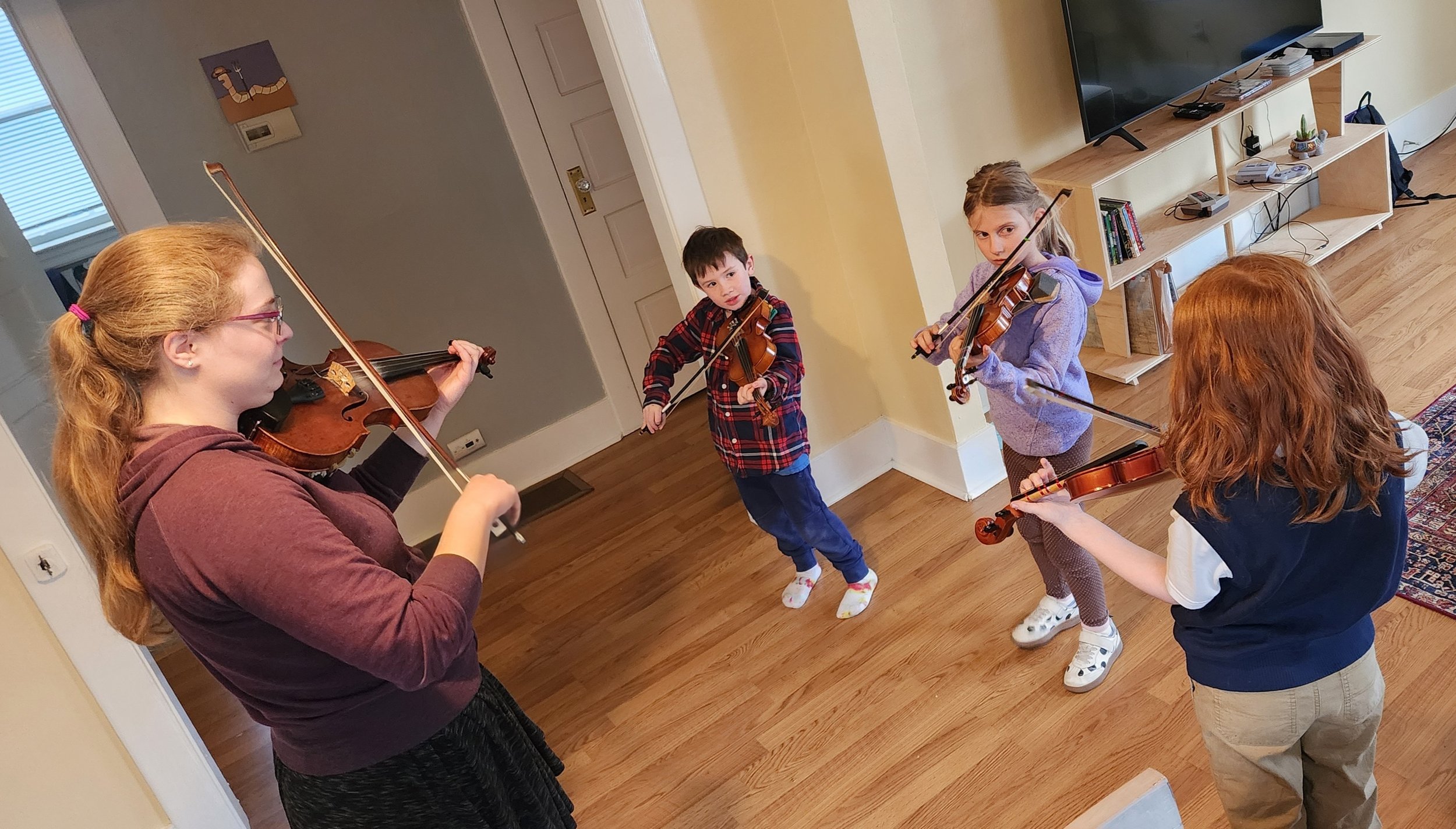 I teach fiddle to learners ages 4 and up.
